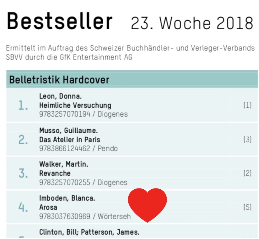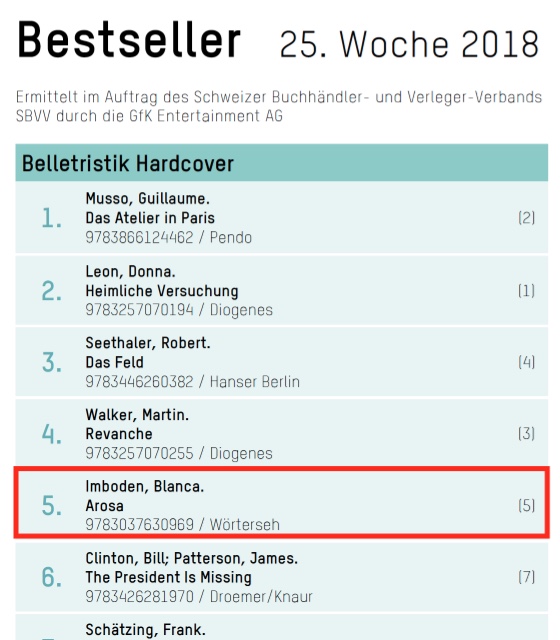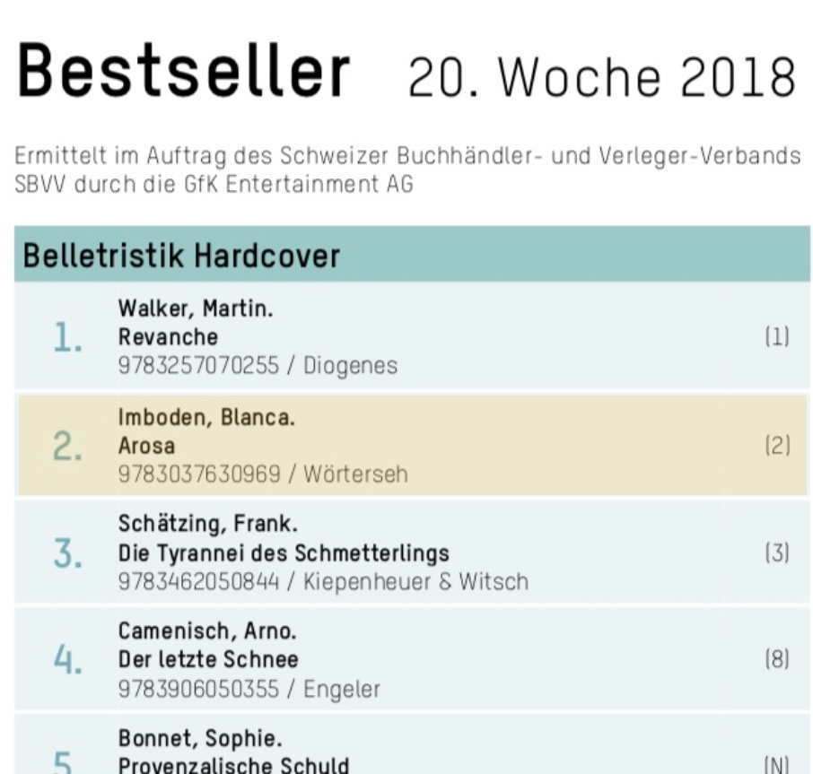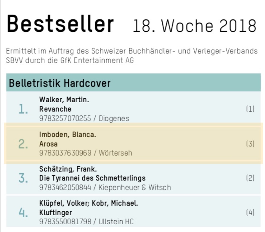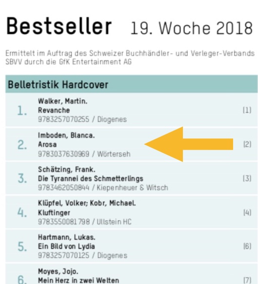 Das AROSA-Buch ist nun in der 11. Woche in der Schweizer Bestsellerliste. Jetzt auf der 9. Schön!