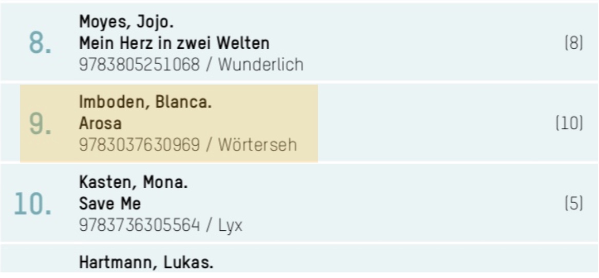 Und, ja, das Buch ist nach 9 Wochen noch immer in der Bestsellerliste unter den Top 5: