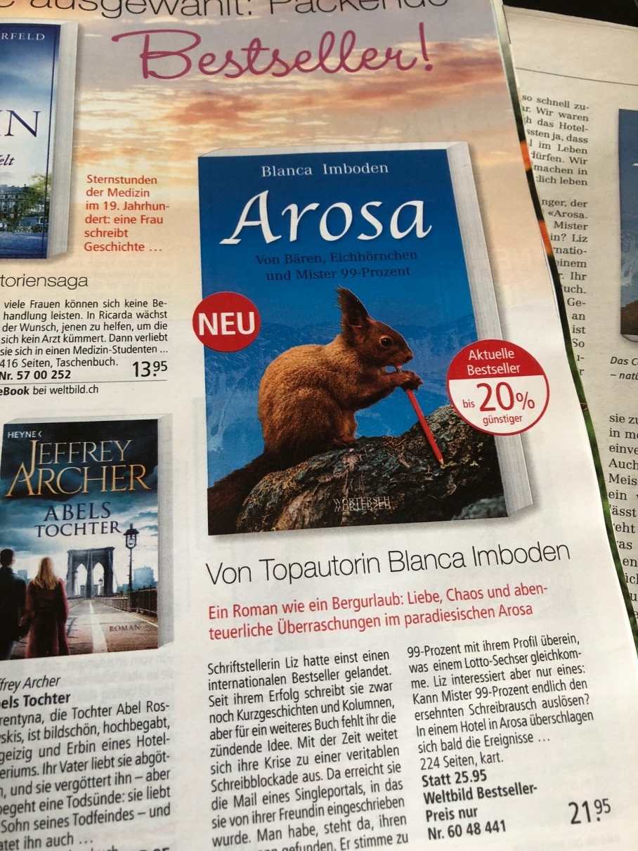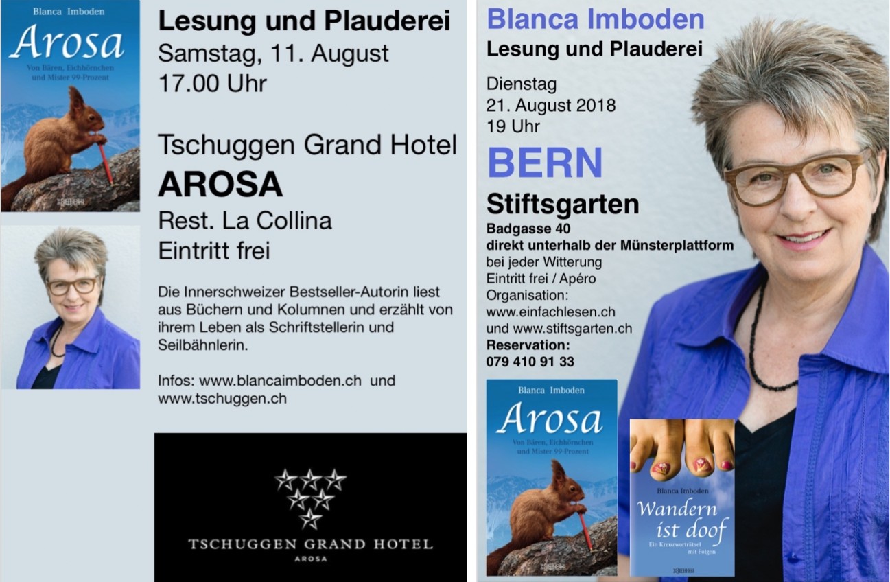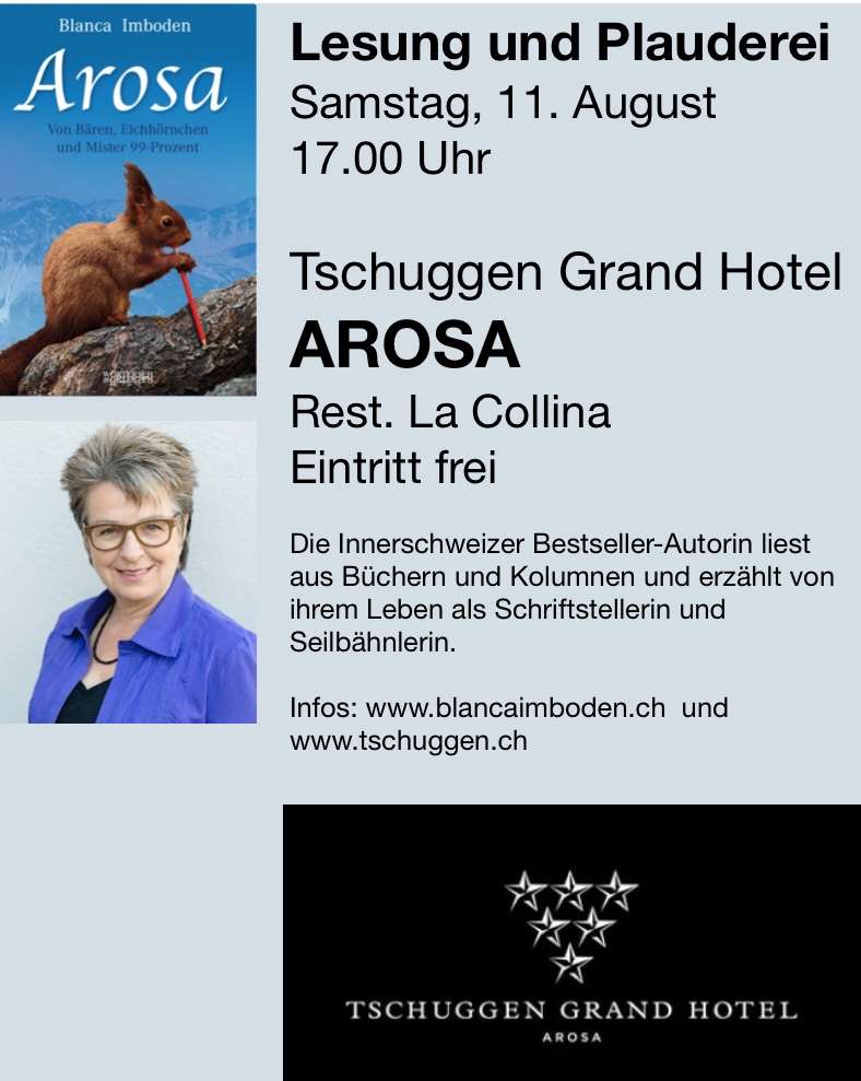 Bald darf ich wieder in AROSA Ferien machen. Dazu gibt es auch eine Lesung. Ich mache im August nur ZWEI Lesungen: