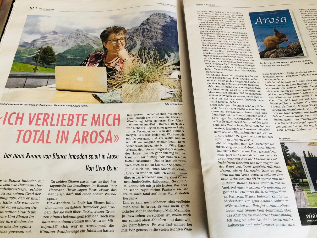Auch die Aroser Zeitung hat gross über mein neues Buch berichtet. Es freut mich ganz besonders, das AROSA bei den Arosern Gnade gefunden hat. Danke, Uwe Oster, für den grossartigen Text! Das Foto von Jeremy Kunz ist ohnehin grossartig. Ich liebe Fotografen, die mich schöner aussehen lassen, als ich bin.