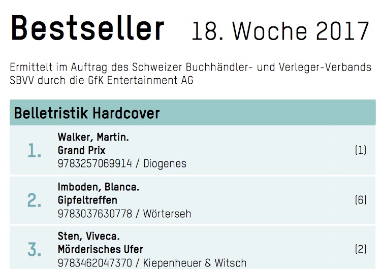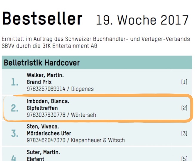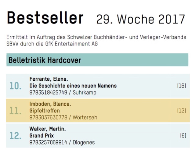 Gipfeltreffen spielt immer noch mit, in der Schweizer Bestsellerliste. Woche 13, Platz 11.