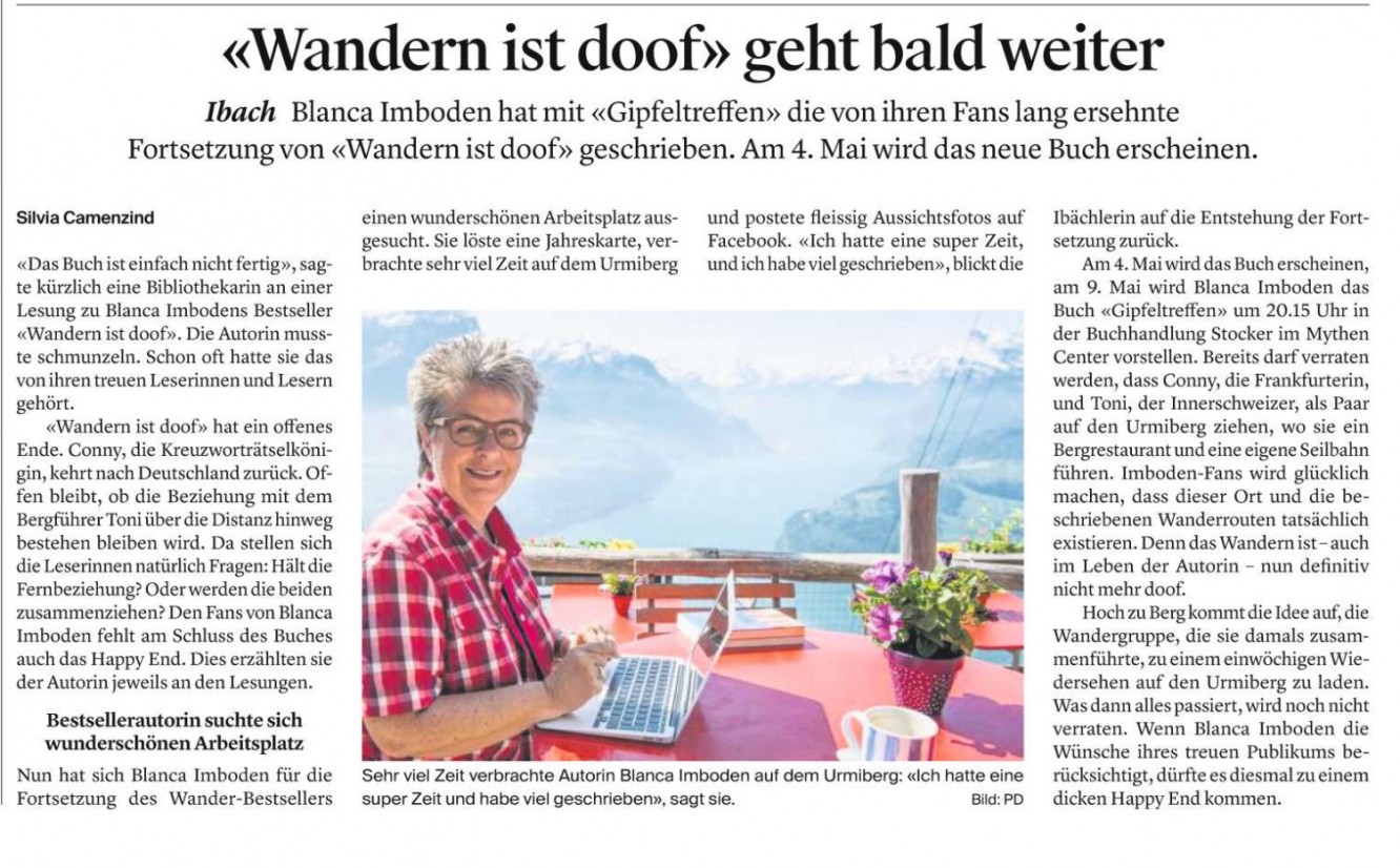 Danke, den Obersee Nachrichten, die als Vorschau auf meine Lesung in Uznach ein grosses Interview mit mir auf dem Urmiberg gemacht haben.