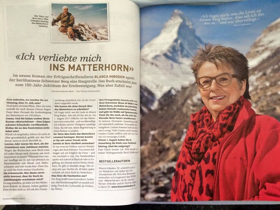 Liebe Blanca, ich habe Dein wunderschönes Buch „Matterhörner“ fertig gelesen: Was für eine berührende Geschichte mit wundervollen Bildern und Emotionen. Und was ich sehr schätze, sind deine kritischen und subtilen Seitenhiebe, die wohl kaum jemand schmerzen, aber deine Haltung klar akzentuieren. Spannend und bildhaft, der Stoos, die Seilbahn, die Charaktere und Persönlichkeiten, die mehr oder weniger direkten Tourismuswerbebotschaften - samt deren oder dessen Kritiken, der Krimi samt Liebesgeschichte(en) - frisch, saftig, humorvoll. Prädikat: Absolut empfehlenswert! --- Niklaus Lehnherr