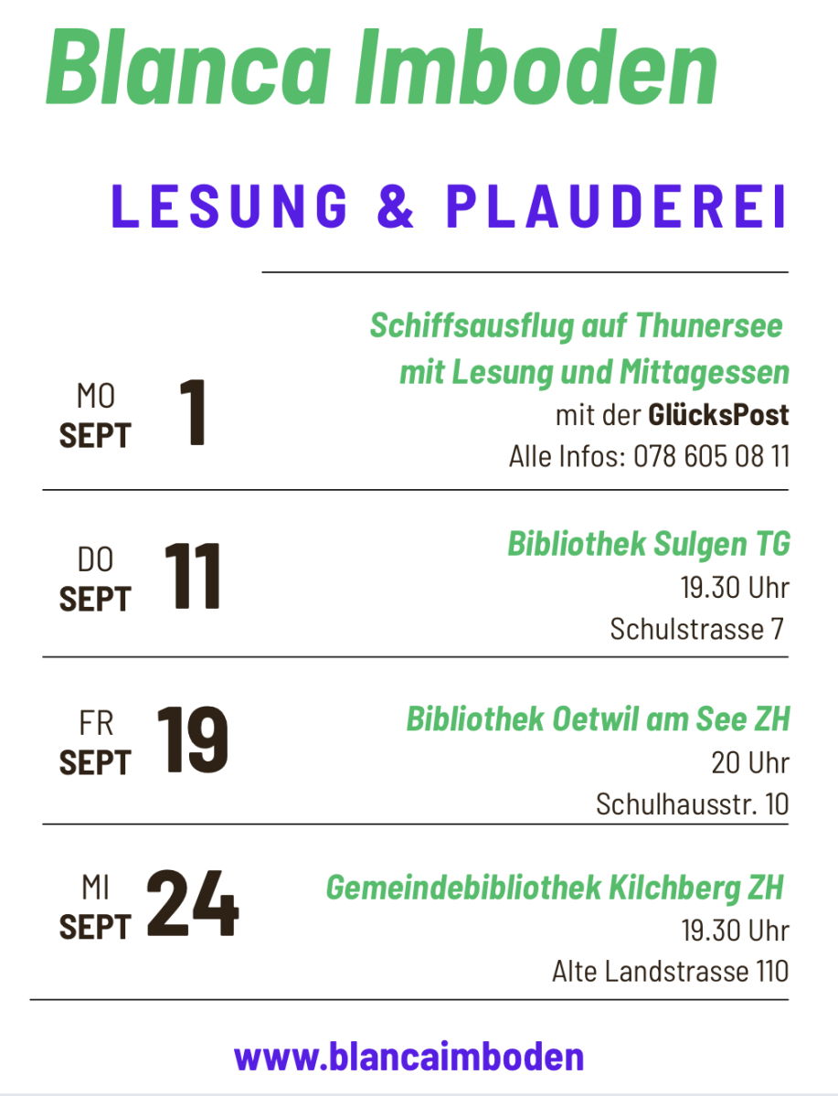 Ausserdem gehe ich diesen Monat wieder auf Lesetour:
