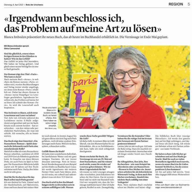 Das Buch ist am 6. April 2021 erschienen und erreichte in der ersten Woche PLATZ 4 der Schweizer Bestsellerliste.