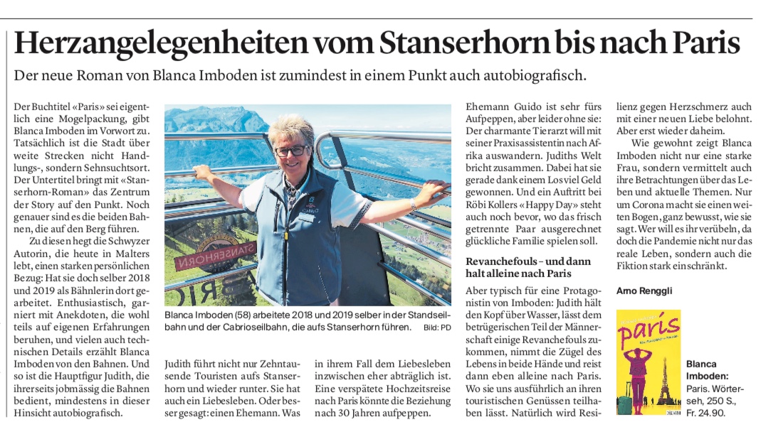 Zwei Saison lang (April-November 2018 und 2019) war ich Bähnlerin am STANSERHORN. Gut, das war nun nicht eigentliche "Recherche", sondern ein bodenständiger Job, der mir in meinem schwersten Jahr (nach dem Tod von Hans und meiner Mutter) das Leben rettete.