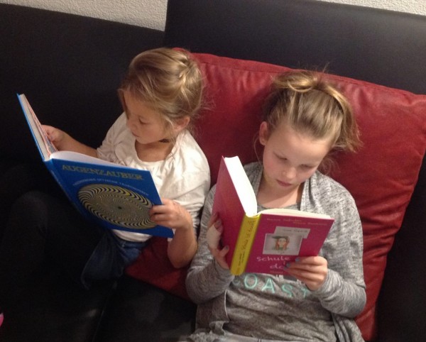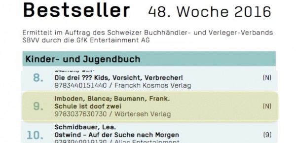 Bin gerade am Lesen von „Schule ist doof 2“. Ich geniesse die Geschichte total und bewundere dich, wie du diese Sprache das ganze Buch lang durchhältst. Bin jetzt etwa auf S. 210 angekommen. Ich bewundere auch Frank für seine tollen Zeichnungen. Vor allem die Porträts finde ich absolut super.