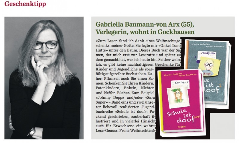Schule ist doof ist eine Kinderbuchserie für Kinder ab 12 Jahren, die zur Überraschung aller auch von Erwachsenen gelesen wird, weil sie witzig und frech ist. Die Bücher erzählen von einer Schulklasse aus einem Schwyzer Gymnasium. Jedes Buch ist einem einzelnen Schüler gewidmet. Die Illustrationen von Frank Baumann sind eine große Bereicherung und unterstützen die Geschichten, machen sie einzigartig.