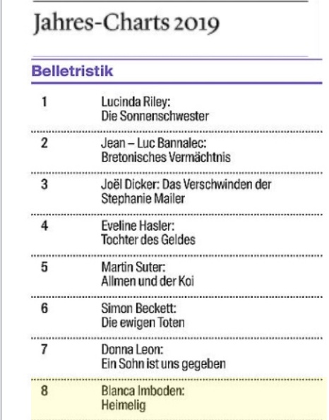 Das Buch ist am 28. Mai 2019 auf Platz 2 in die Schweizer Bestsellerliste eingezogen. In der dritten Woche erreichte es PLATZ EINS!